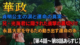 韓国ドラマ「華政」第4話〜第8話【あらすじ】|貞明公主の涙と運命の真実…兄・光海君に隠された衝撃の裏切り!?永昌大君を守るため動き出す運命の糸… 2025/12/19 大君韓国ドラマ 韓国ドラマを無料で見る方法 見逃したドラマ・映画・アニメを無料で見る方法 韓国ドラマ「華政」第4話〜第8話【あらすじ】|貞明公主の涙と運命の真実…兄・光海君に隠された衝撃の裏切り!?永昌大君を守るため動き出す運命の糸…